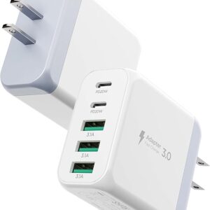 USB C Charger Block, [2-Pack] Type C Charger Fast Charging,50W 5-Port USB Wall Charger Multiport