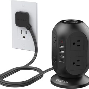 Surge Protector Power Strip Tower, TESSAN 10 ft Flat Extension Cord with Multiple Outlets,