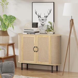 Sideboard Buffet Cabinet with Storage,Rattan Small Buffet Cabinet,Oval Accent Cabinet
