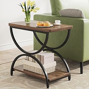 Table with Stylish Metal Frame, Vintage Rectangular Bedside Nightstand for Bedroom,