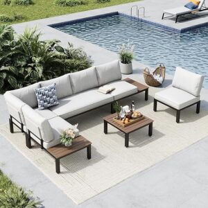 6 Pieces Patio Furniture Set,Outdoor Metal Frame Patio Sectional Sofa Conversation Set