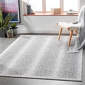 Medium Gray Area Rug, Grey White Carpet for Living Room, Bedroom or Kitchen (6’7″ x 9′)