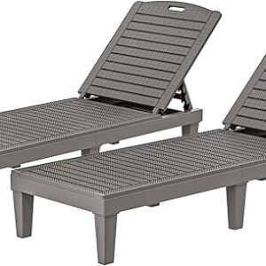 Outdoor Chaise Lounge Chair, Plastic Pool Chaise Lounge with 5-Position Backrest, Easy Assembly