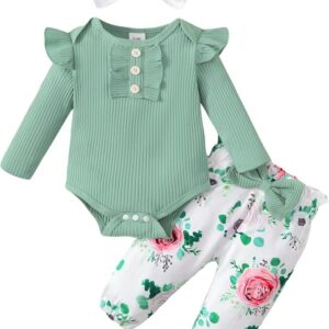 Baby Girl Clothes Newborn Infant Long Sleeve Ruffle Romper Floral Pants Outfit Set for 0-18 Months