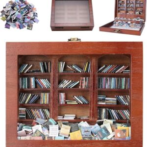 Bookshelf Tiny Miniature Library Display Cabinet with Mini Books | Stress Relief and Creativity Decor