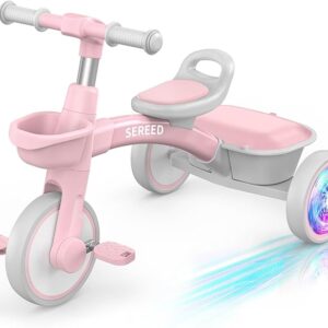 Colorful Lighting Toddler Tricycle for 2-5 Years Old Girls, Adjustable Seat&Handlebar Trike,