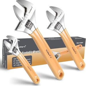 MULWARK 3-piece Adjustable Wrench Sets, 10/8/6 Inch Cr-V Steel Wrench with Grip –