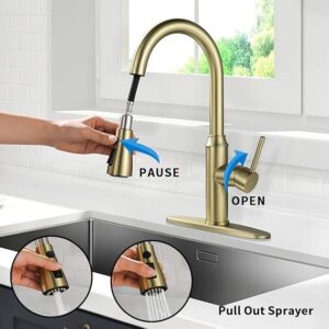 Gold Kitchen Faucet with Sprayer,Single Handle Kitchen Sink Faucet with Pull Out Sprayer