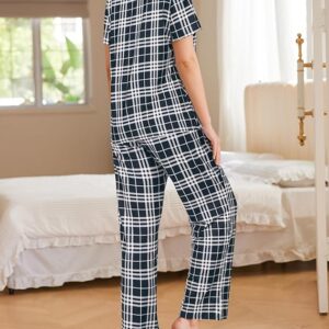 Women Pajamas Set Button Down Sleepwear Short Sleeve Nightwear with Long Pants Soft