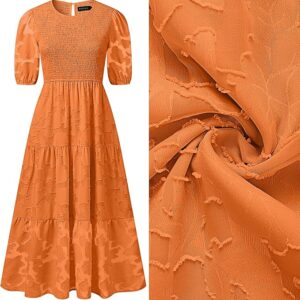 Women’s 2025 Summer Short Puff Sleeve Crewneck Smocked Floral Lace Flowy A Line Tiered Maxi