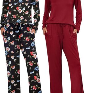 Women’s Pajama Set Soft Long Sleeve Sleepwear Loungewear Pjs Sets with Pockets S-XXL