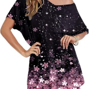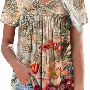 Womens T Shirts Short Sleeve Pleated Dressy Casual V Neck Summer Tops Blouses
