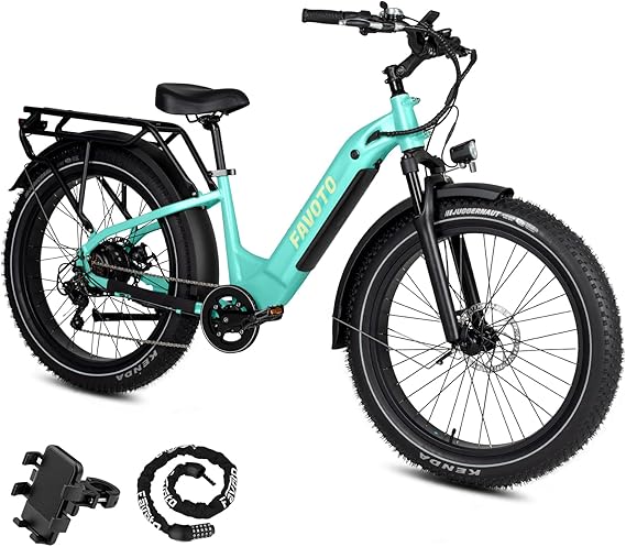 Favoto 750W Folding Electric Bike, 26″ Off-Road Ebike for Adults, 48V 20Ah, 25mph, 60 Miles Range, 7-Speed, Dual Disc Brakes, Commuter Ebike, Black