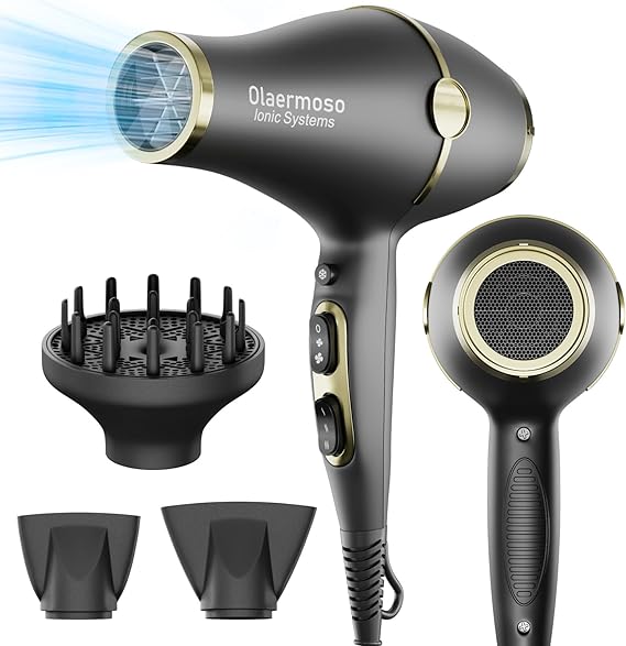 - Olaermoso professional hair dryer features cutting-edge ionic technology that emits over 𝟏𝟎𝐌+ 𝐧𝐞𝐠𝐚𝐭𝐢𝐯𝐞 𝐢𝐨𝐧𝐬, negative ion hair dryer providing exceptional protection for your hair. These ions work to minimize frizz and boost shine,leaving your locks looking and feeling healthier than ever!