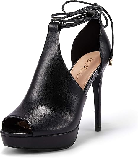 - These Stunning Stilettos Heel Sandals Features Lace up Ankle Strap Fastening, Open Side Cutout, Peep Toe, with Black, White, Brown, Beige 4 Color Choice, Platform Front Desigh Make You Comfortable To Wear.