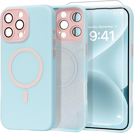 Case Compatible with iPhone 16 Pro Max – Real Liquid Silicone Case Compatible with MagSafe, [Full Camera Protection] Silicone Shockproof Protective Phone Case for iPhone 16 Pro Max 6.9″, Blue Pink