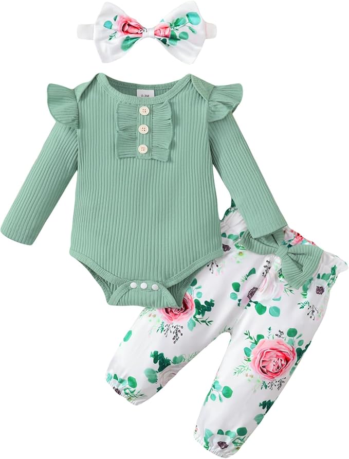 Baby Girl Clothes Newborn Infant Long Sleeve Ruffle Romper Floral Pants Outfit Set for 0-18 Months