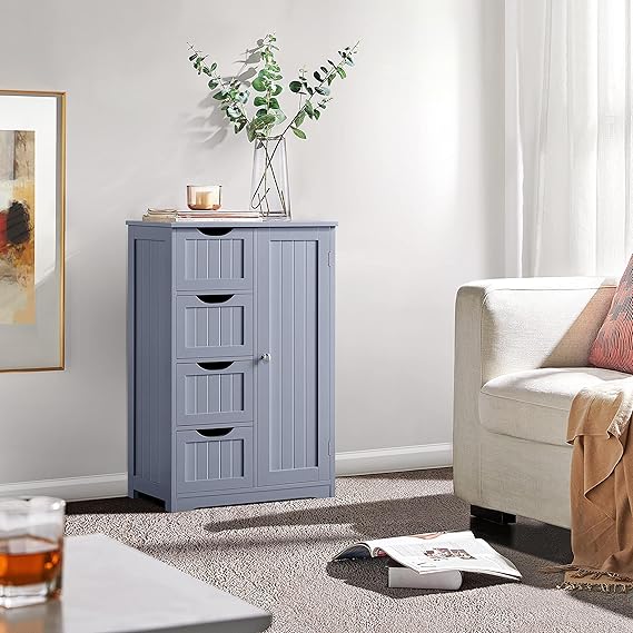 Wooden Floor Cabinet, Side Storage Organizer with 4 Drawers and 1 Cupboard,