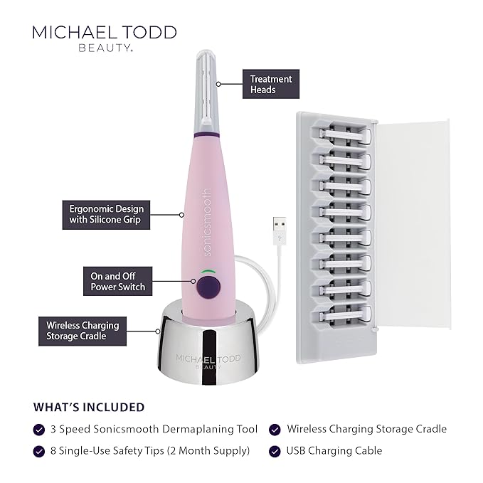 SONICSMOOTH – Experience the instant transformation to youthful, smoother, softer, and radiant skin with Michael Todd Beauty’s award-winning, at-home sonic dermaplaning system. Now with 3 times more sonic power, Sonicsmooth delivers unparalleled results. Dermatologist approved, it offers quick, easy, and painless exfoliation, along with effective peach fuzz removal.
