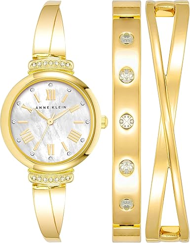 Anne Klein Women’s Premium Crystal Accented Bangle Watch Set, AK/2245