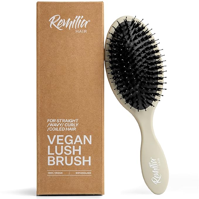 Remilia Hair Vegan Lush Brush – Detangling Hair Brush for All Hair Types, Natural, Straight, Curly, Wet, & Dry Hair – Hair Comb with Vegan Boar Bristles & Soft Ballpoint Tips, Sand