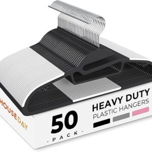 HOUSE DAY Black Plastic Hangers 50 Pack, Slim Clothes Hangers Space Saving,