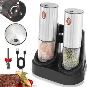 New 2Pack Rechargeable Electric Salt and Pepper Grinder Set with Charging Base Portable